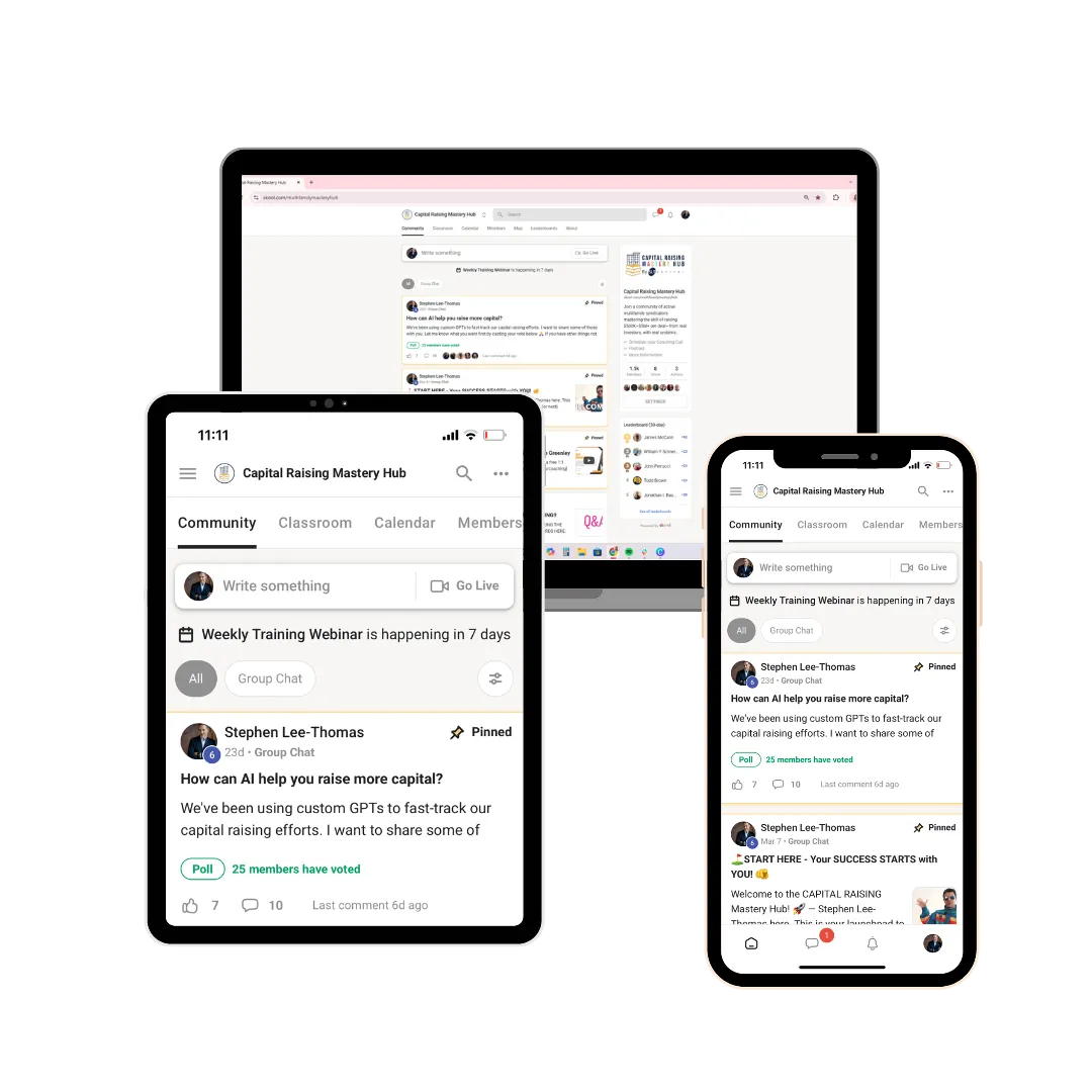 Access to Weekly Trainings & Discussions: Learn directly from Stephen Lee-Thomas and other top capital raisers inside the Hub.